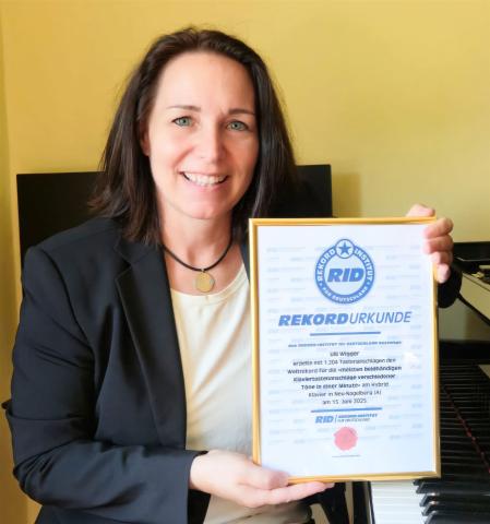 Weltrekord: Ulli Wigger ist mit 1204 Anschlägen pro Minute / 20,07 Anschläge Pro Sekunde schnellste Pianistin der Welt und stellt auch ihre männlichen Mitbewerber weit in den Schatten! Weitere Informationen hier klicken!