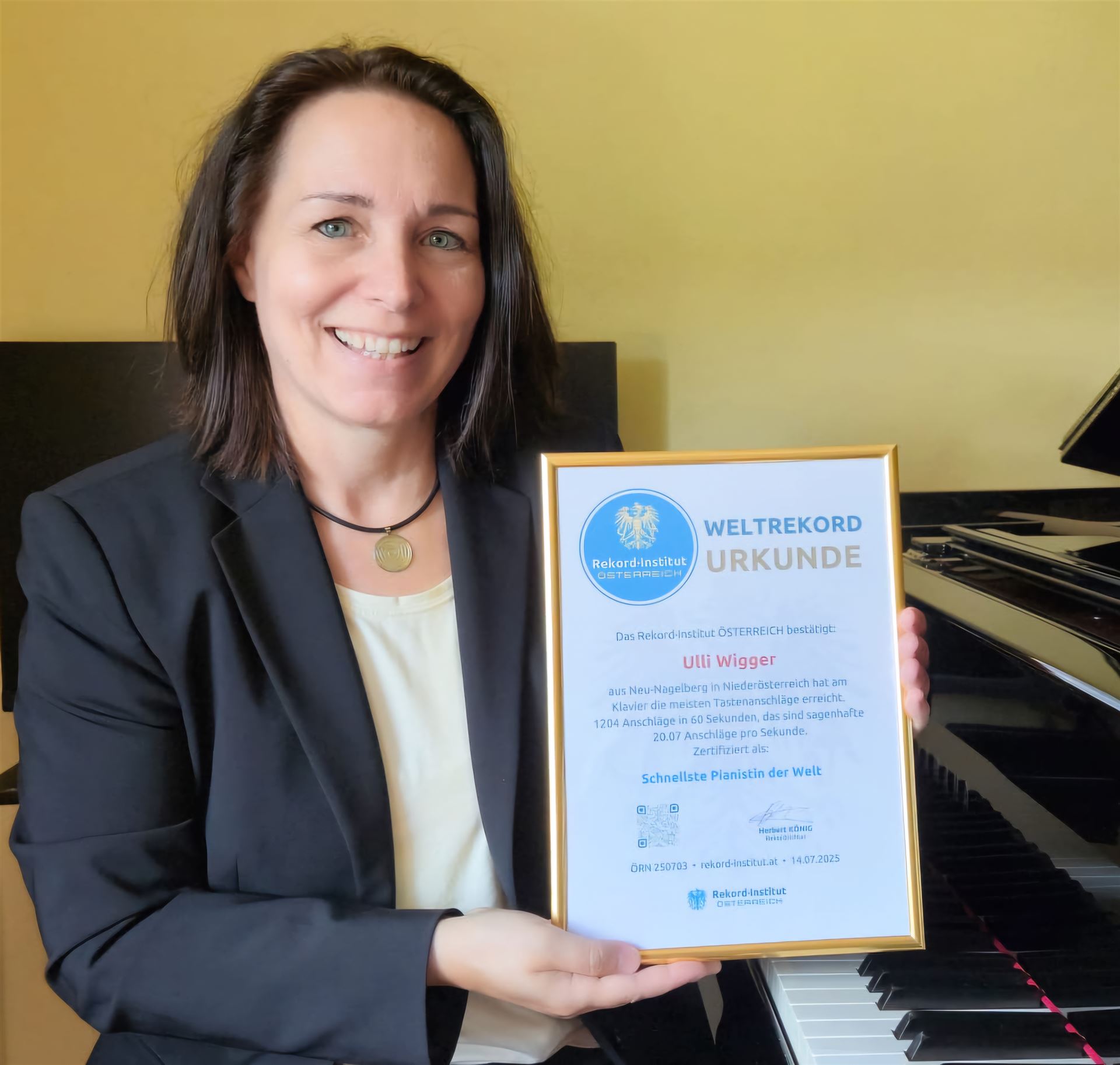 Worldrecord: With 1204 beats per minute / 20.07 beats per second, Ulli Wigger is the fastest pianist in the world and even leaves her male competitors far in the shade! Click here for more information!